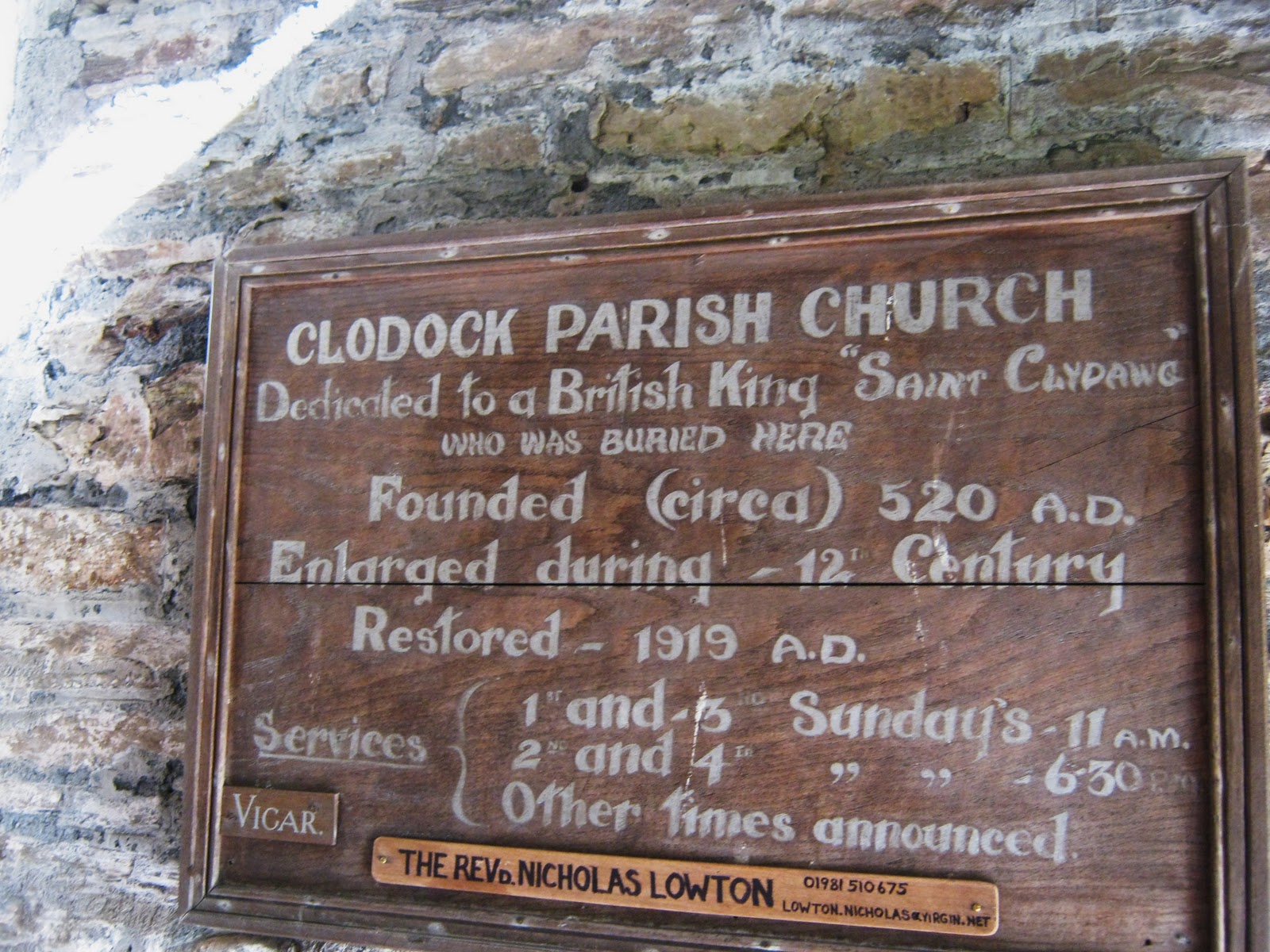 It was served by The Abbey of John the Baptist at Llanthony, who were its patrons. Its dedication was to St Clodock. In Rome, in the Taxatio of Pope Nicholas where Clydag is referred to in various Latin forms ST CLEODICUS ST CLYDOG ST CLODOCH ST CLADOCUS ( as in evidence of 1517). It was valued in the taxation at the enormous sum of £20, so must have been quite a rich church. It is given as being the Diocese of St David. Since the whole area was overrun by Saxons around 600AD it is likely the Saxons, when they became Christianised, improved the church and it was this church which was rebuilt in Norman times and became attached to the nearby Priory of Augustinian Canons in nearby Llanthony.