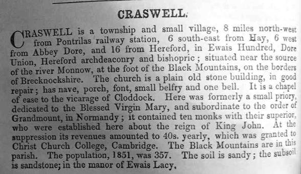 An image of the 1858 Cassey Directory entry for Craswall is given below.