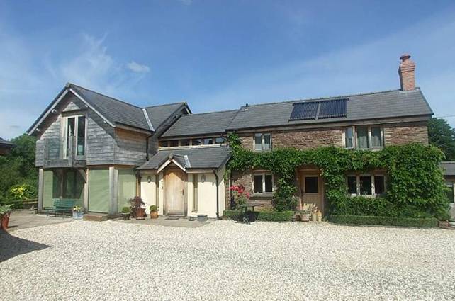 A quietly located beautifully converted and extended character property with contemporary oak framed extension, detached outbuildings with a variety of potential uses and approximately 4 acres of surrounding land with views to the Black Mountains. Upper Rock is a beautifully appointed detached period property standing in a quiet, rural location with outbuildings, set in about 4 acres of land. Originally a character cottage the property has been greatly altered and extended with the addition of an oak framed extension with imaginative use of glass to provide wonderful views from the principal rooms, yet retain all of the inherent charm and character that the property has. The original cottage is believed to date back to the early part of the 19th Century and care has been taken with the Oakwright designed extension to provide a sustainable, eco-friendly heating and lighting system making the property very economical to run. In addition, there are features such as wood burning stoves, PV panels (producing an income), solar panels, ground source heating, rainwater harvesting and private bio-disc drainage to minimise the impact of the environment and the running costs. There is a detached L-shaped range of outbuildings incorporating a large studio with office space with wet room off - ideal for work from home or (subject to any necessary consents) further residential living accommodation. Alongside is a small barn and double open garaging. The property stands in a generous garden with a three acre paddock area beyond and additional land (up to 12 acres) possible.