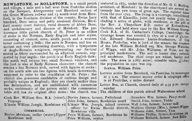 An image of the full 1905 Kelly’s Directory entry for Rowlestone is given below.
