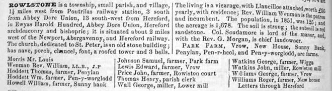 An image of the full directory entry for Rowlestone is given below.