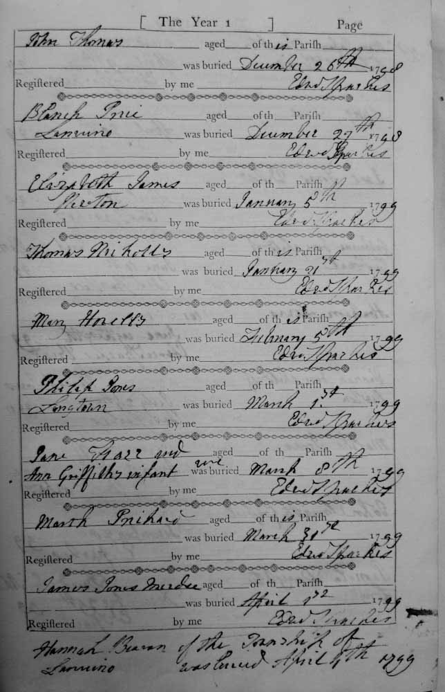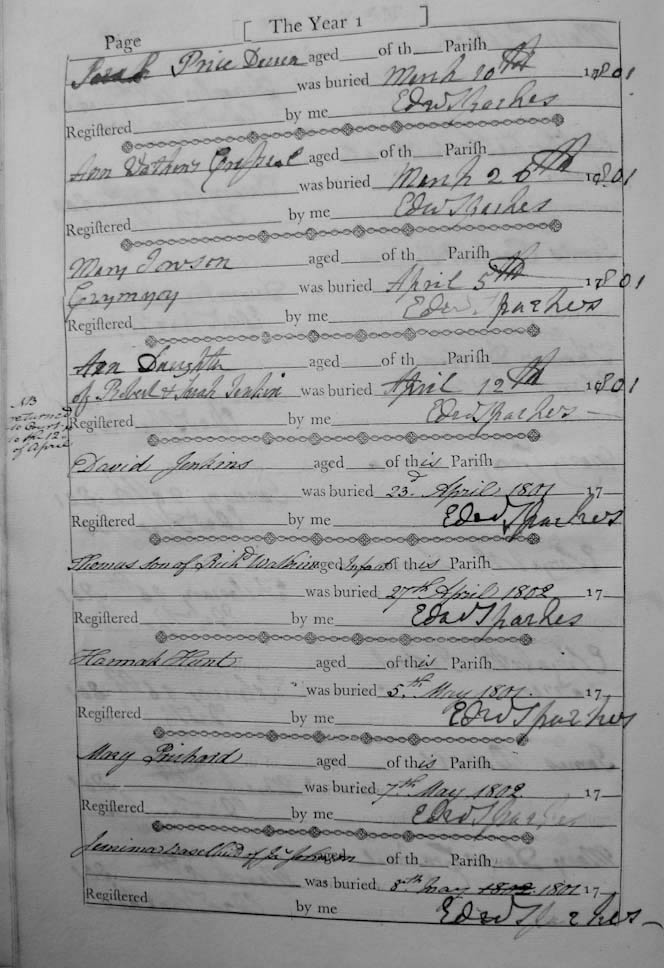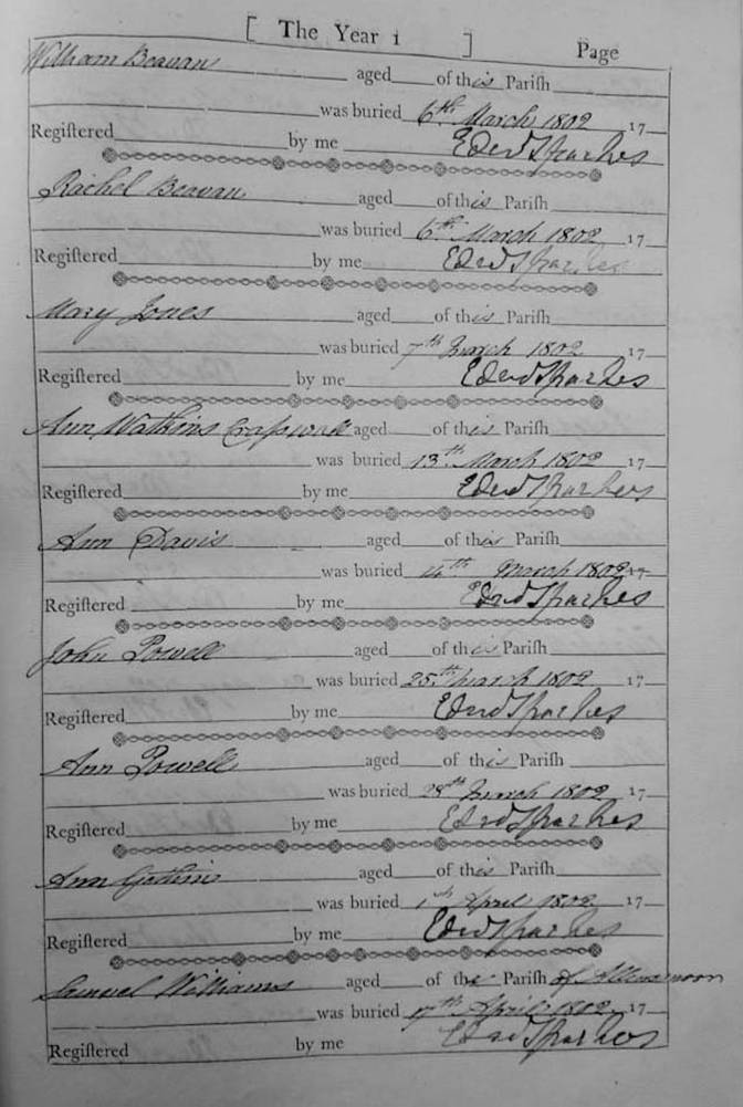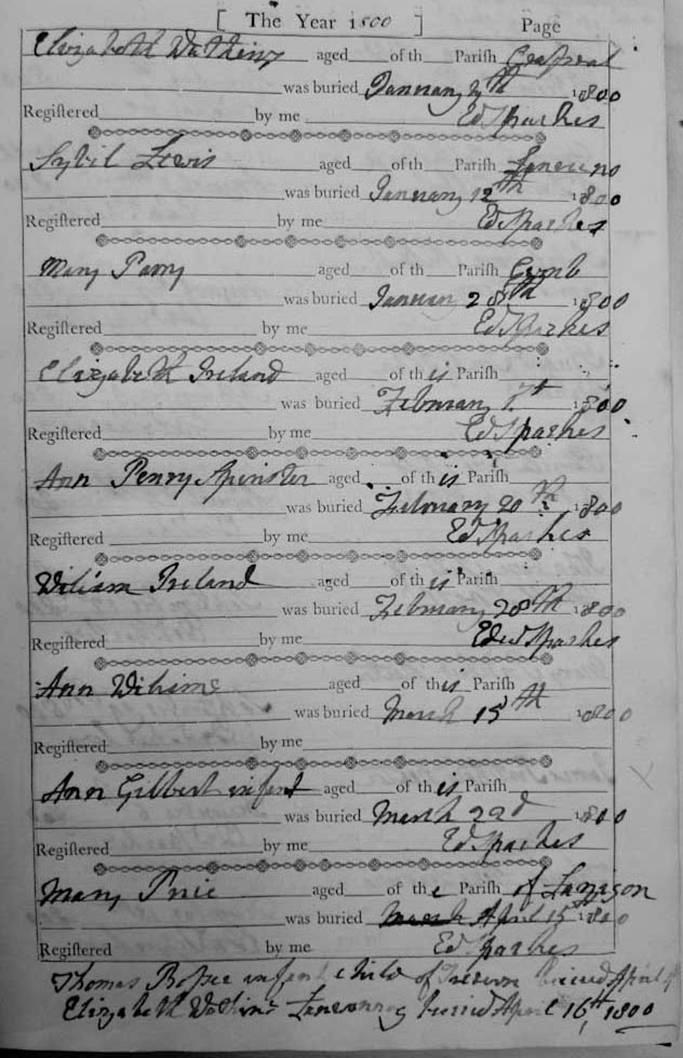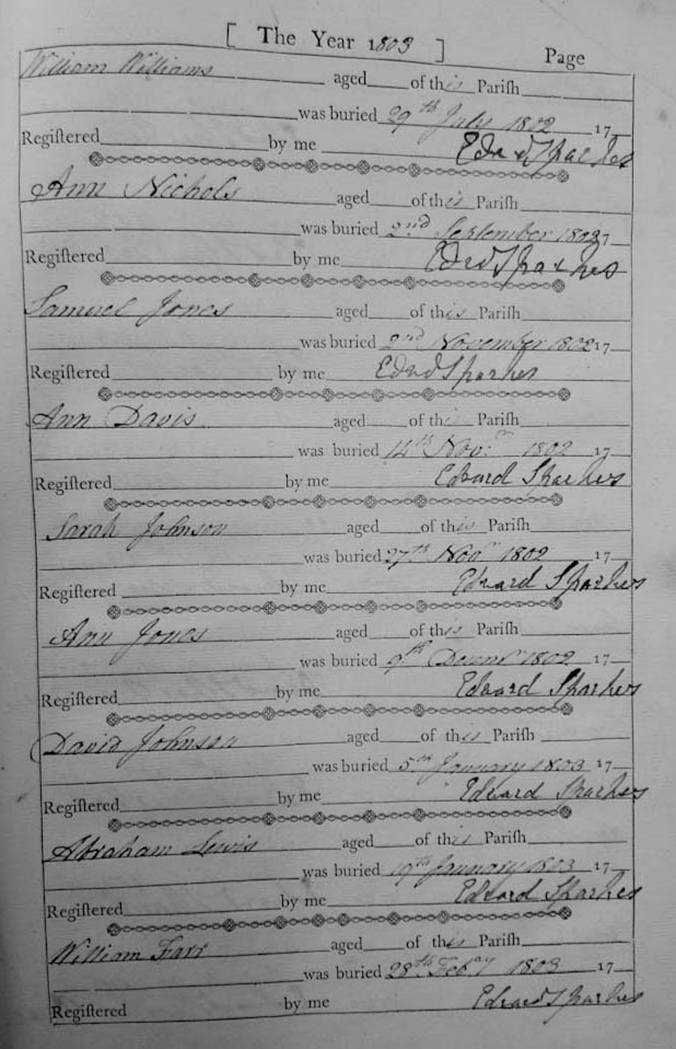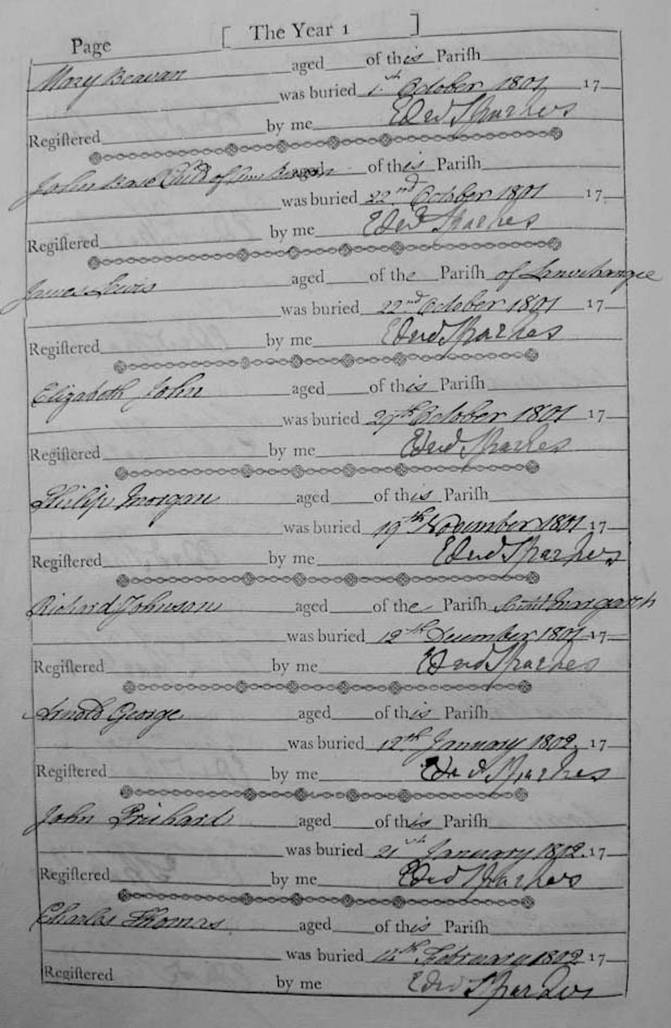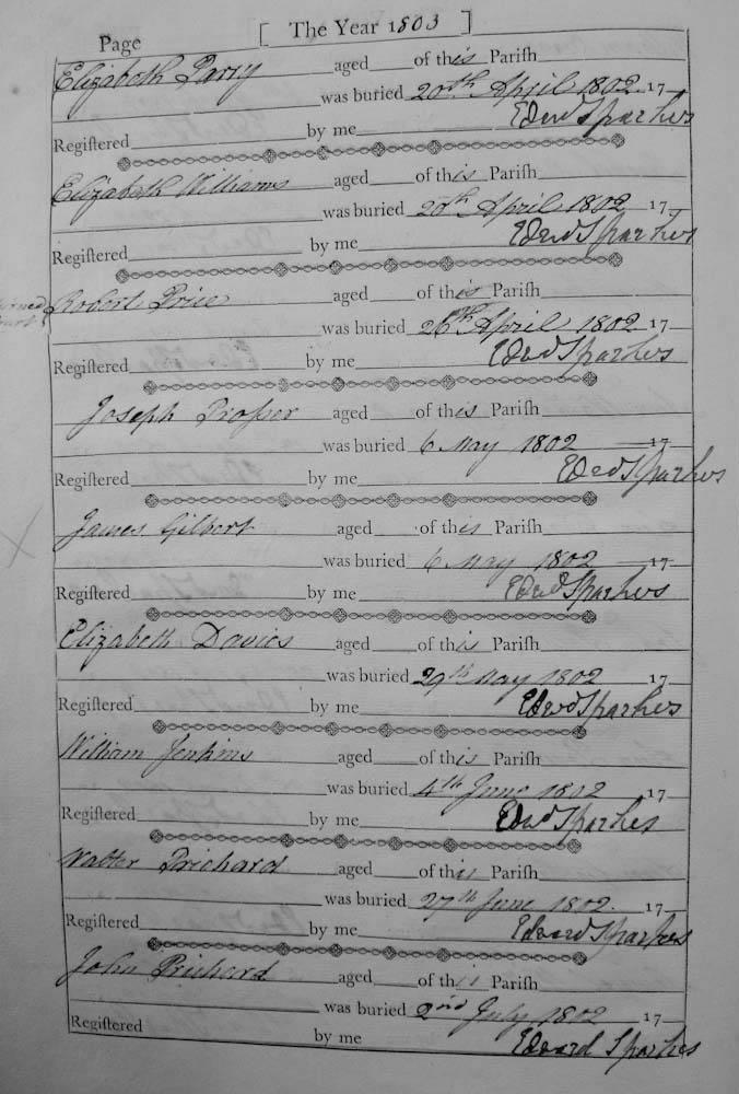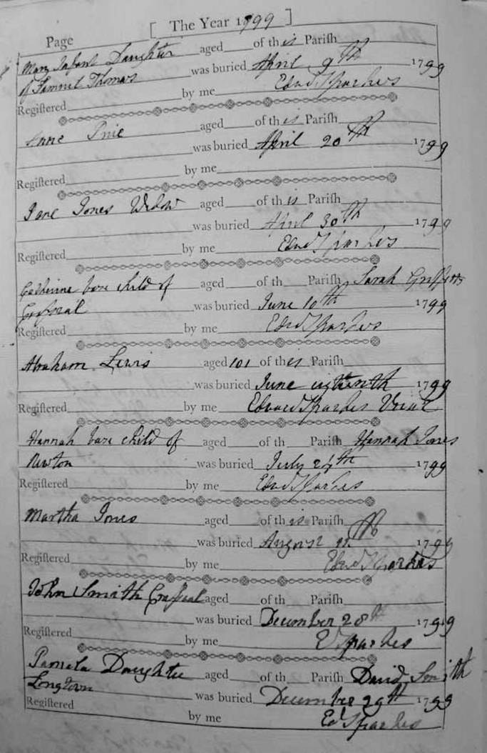Title: | Digital Images Collection [1799 to 1802]: Register of Clodock Burials 1793 to 1812 |